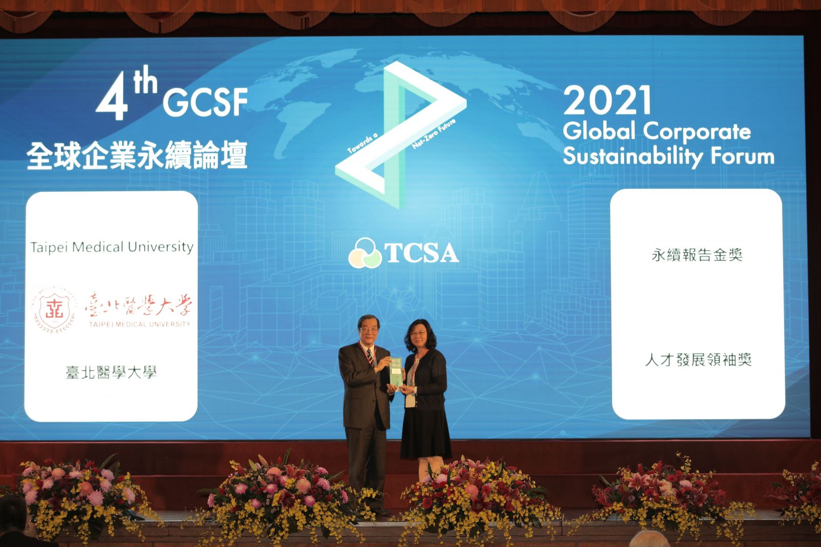 (下圖左至右為:第五期高階主管課程、2021TCSA永續發展獎頒獎典禮-人力發展領袖獎)